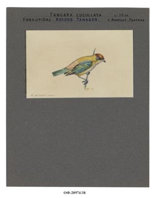 Красношапочная танагра. Tangara cucullata. Рисунок