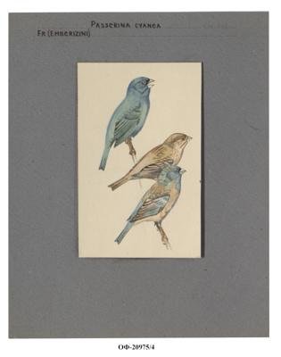 Индиговый овсянковый кардинал - 3 птицы. Passerina cyanea. Рисунок