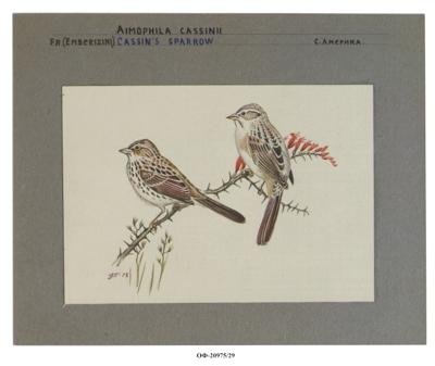 Тростниковая аимофила, 2 птицы. Peucaea cassinii. Рисунок