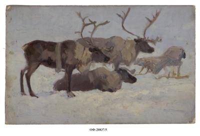 Северные олени на отдыхе. Картина