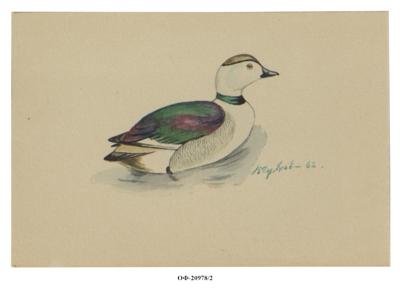 Хлопковый блестящий чирок, или индийский малый гусь. Nettapus coromandelianus. Рисунок