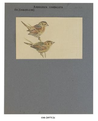Острохвостая саванная овсянка, 2 птицы. Ammodramus caudacutus. Рисунок