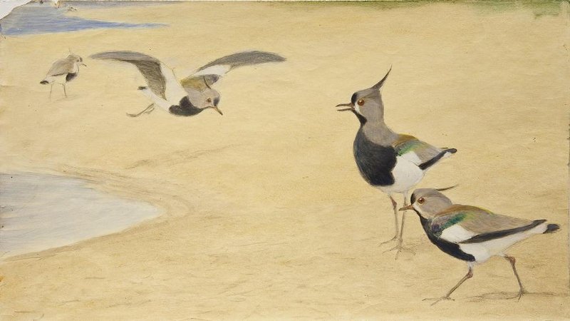 Танцы чибисов. Первая фаза ритуального танца. Картина