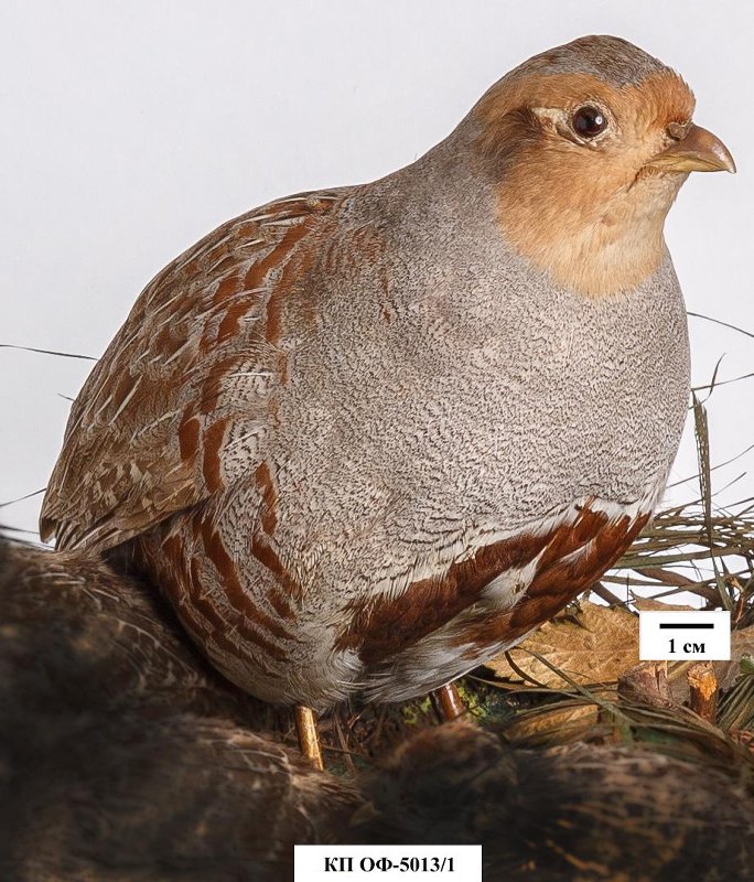 Чучело. Cерая куропатка(самец). Perdix perdix (L.,1758). Классификация: Хордовые Chordata, Позвоночные Vertebrata, Птицы Aves, Курообразные Galliformes, Фазановые Phasianidae, Серая куропатка Perdix perdix (L.,1758)