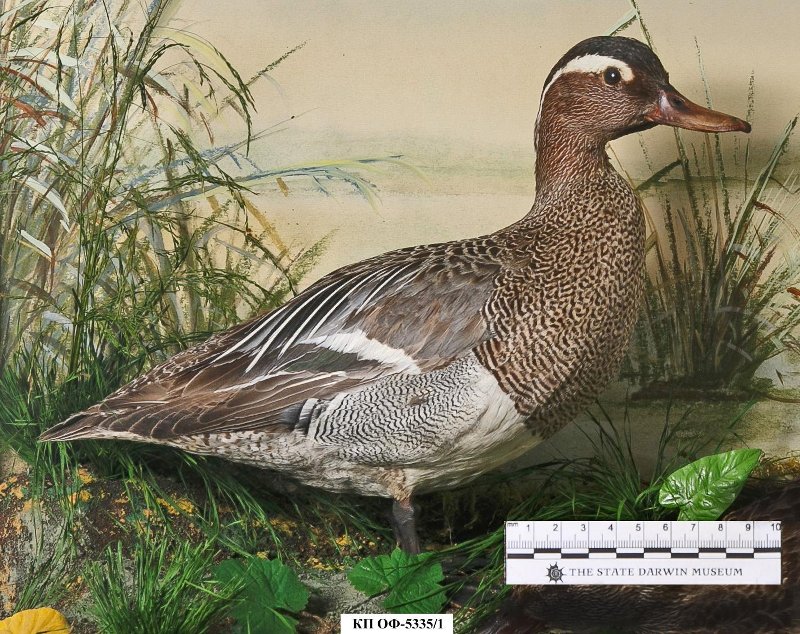 Чучело. Трескунок. Anas querquedula L.,1758. Классификация: Хордовые Chordata, Позвоночные Vertebrata, Птицы Aves, Гусеобразные Anseriformes, Утиные Anatidae, Чирок-трескунок Spatula querquedula (L.,1758)