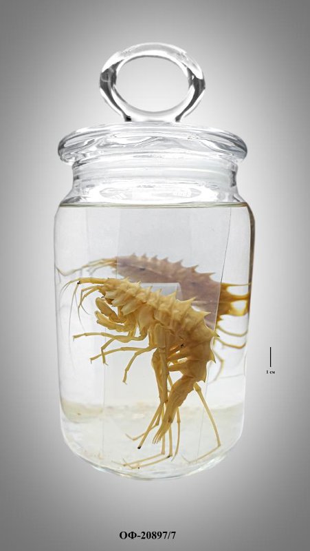Влажный препарат ОФ-20896/7: Байкальский Бокоплав, или Амфипода - Brachyuropus grewingkii (Dybowsky, 1874). 1 ad. Банка 05/13-222. Научно-коллекционный карцинологический препарат. Пол: самец. Возраст: ad