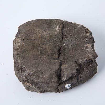 Позвонок ихтиозавра пористый, хрупкий. Склеен из нескольких фрагментов. Тёмно-серого цвета.