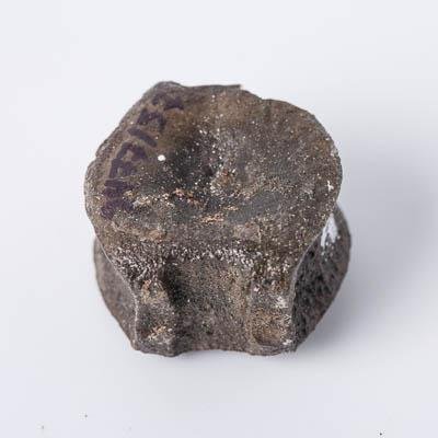 Фрагмент позвонка ихтиозавра пористый, хрупкий. Тёмно-серого цвета. Дуги позвонка - не сохранились.