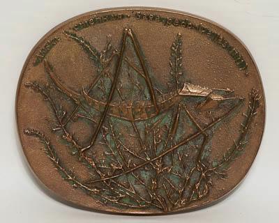На лицевой стороне медали помещено профильное изображение (правая часть) дыбки степной. Голова - справа, задняя часть - слева. Вокруг изображения дыбки заметно присутствие патины в виде зеленоватого налёта. Дыбка изображена на фоне композиции из острых травинок с колосками. Вверху по окружности надпись: "Дыбка степная". За ней следует надпись: "Saga pedo Pallas 1771" (видовое название по латыни дыбки степной).